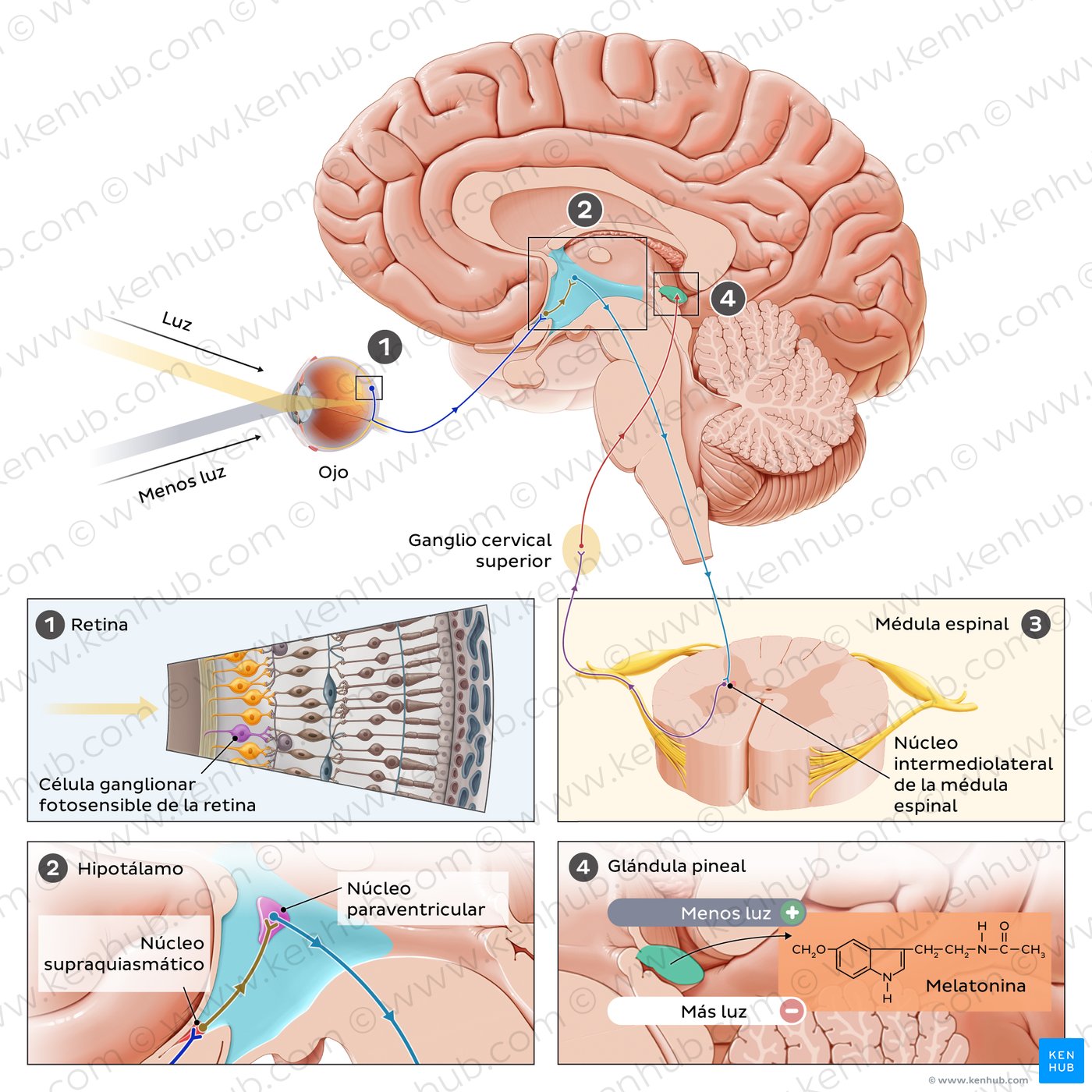 Ciclo natural de 24 horas de las funciones fisiológicas Regulado por el núcleo supraquiasmático del hipotálamo, que responde a la presencia o ausencia de luz Controla la secreción de melatonina por la glándula pineal |