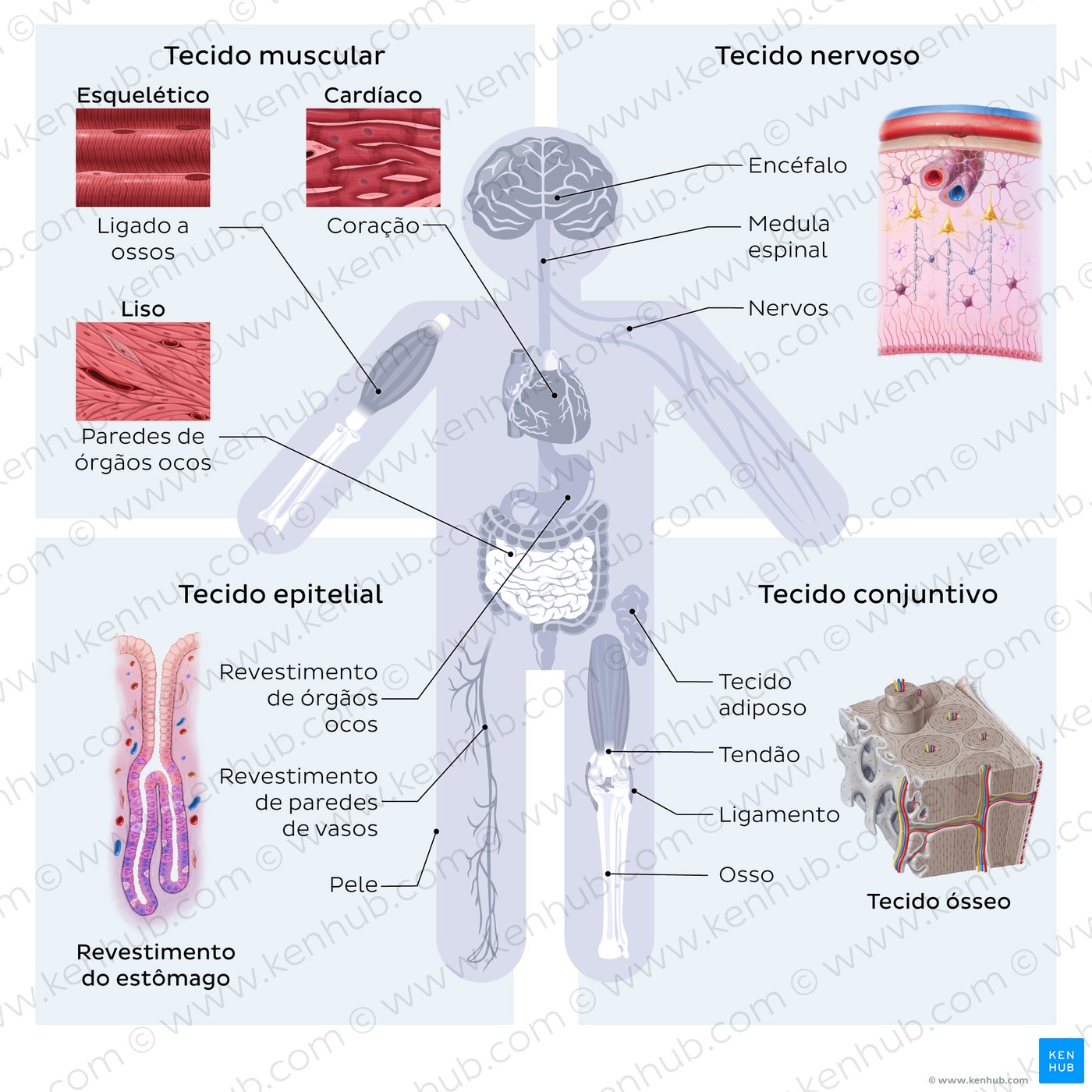 Existem quatro tipos importantes de tecidos no corpo, cada um com um grupo específico de funções: